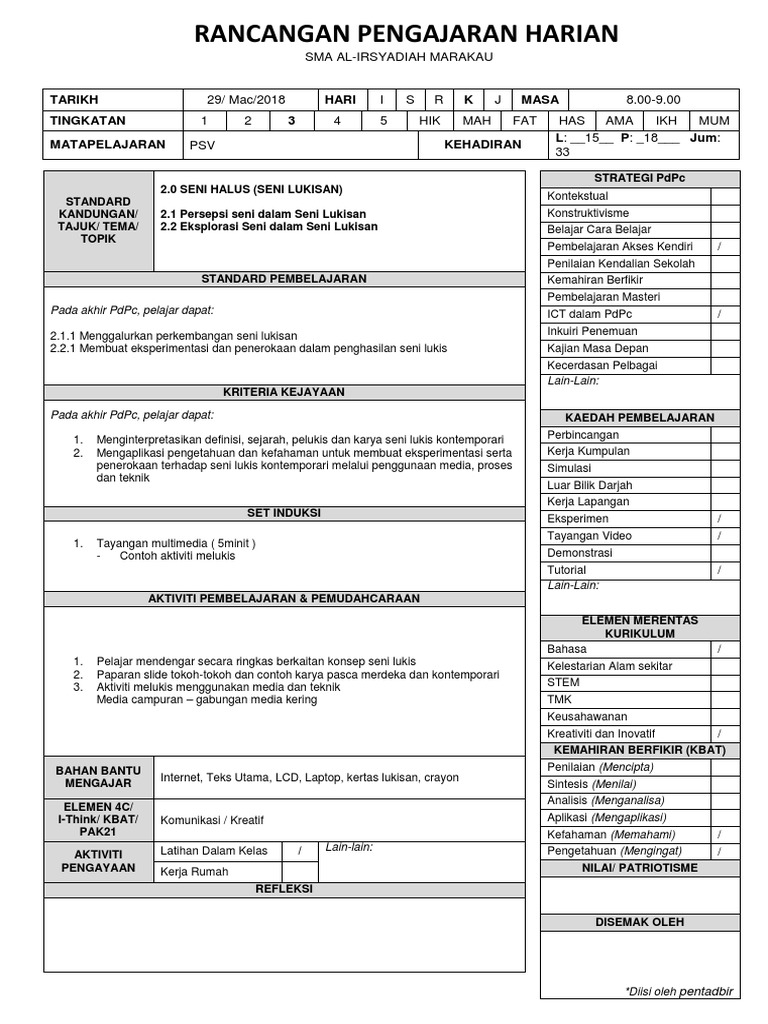 Psv Tingkatan 5 Seni Lukisan Worksheet